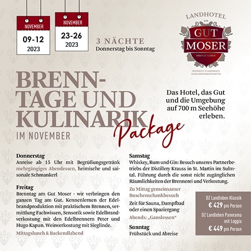 Vormittags: Entdecken Sie die Welt der edlen Brände in unserer Brennerei. Die Brennmeister Peter und Hugo Kapun geben Einblick in edle Welt des Brennens.