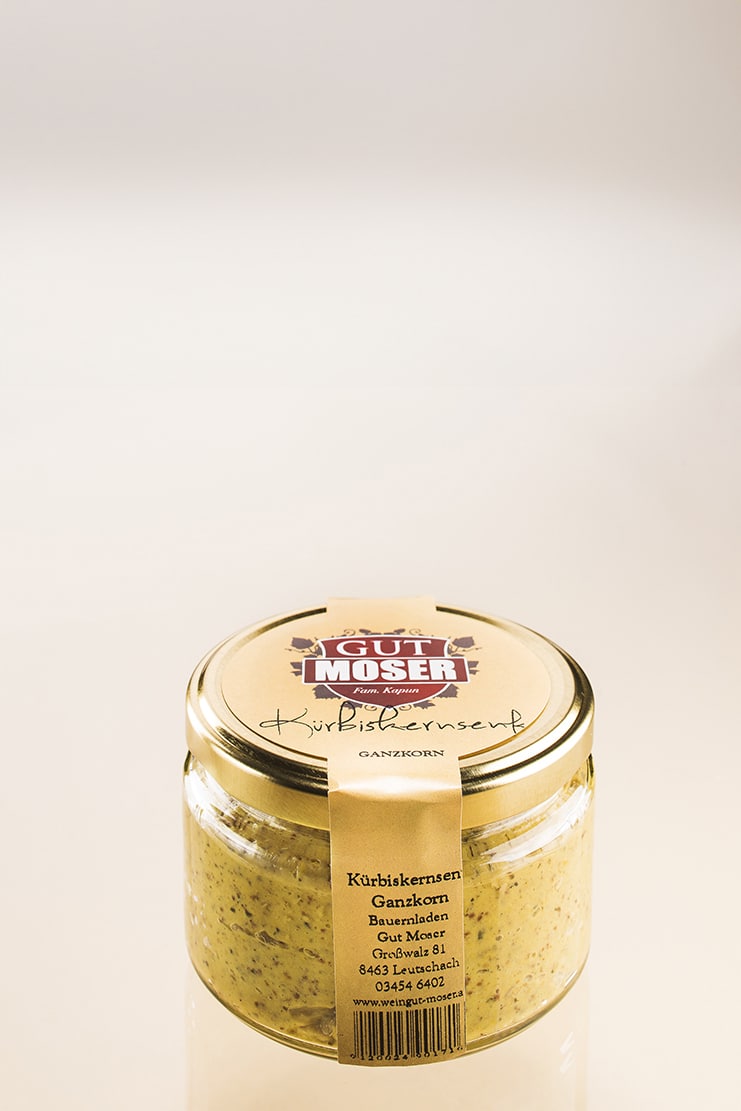 Zutaten: Quellwasser, Apfelessig, Kürbiskerne, Senfsaat, Salz, Zucker und Gewüze