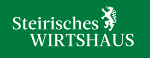 Auf grünem Hintergrund und weißem Text steht „Steirisches Wirtshaus“, begleitet von einem stilisierten weißen Löwensymbol, wodurch eine einladende, hotelähnliche Atmosphäre geschaffen wird.