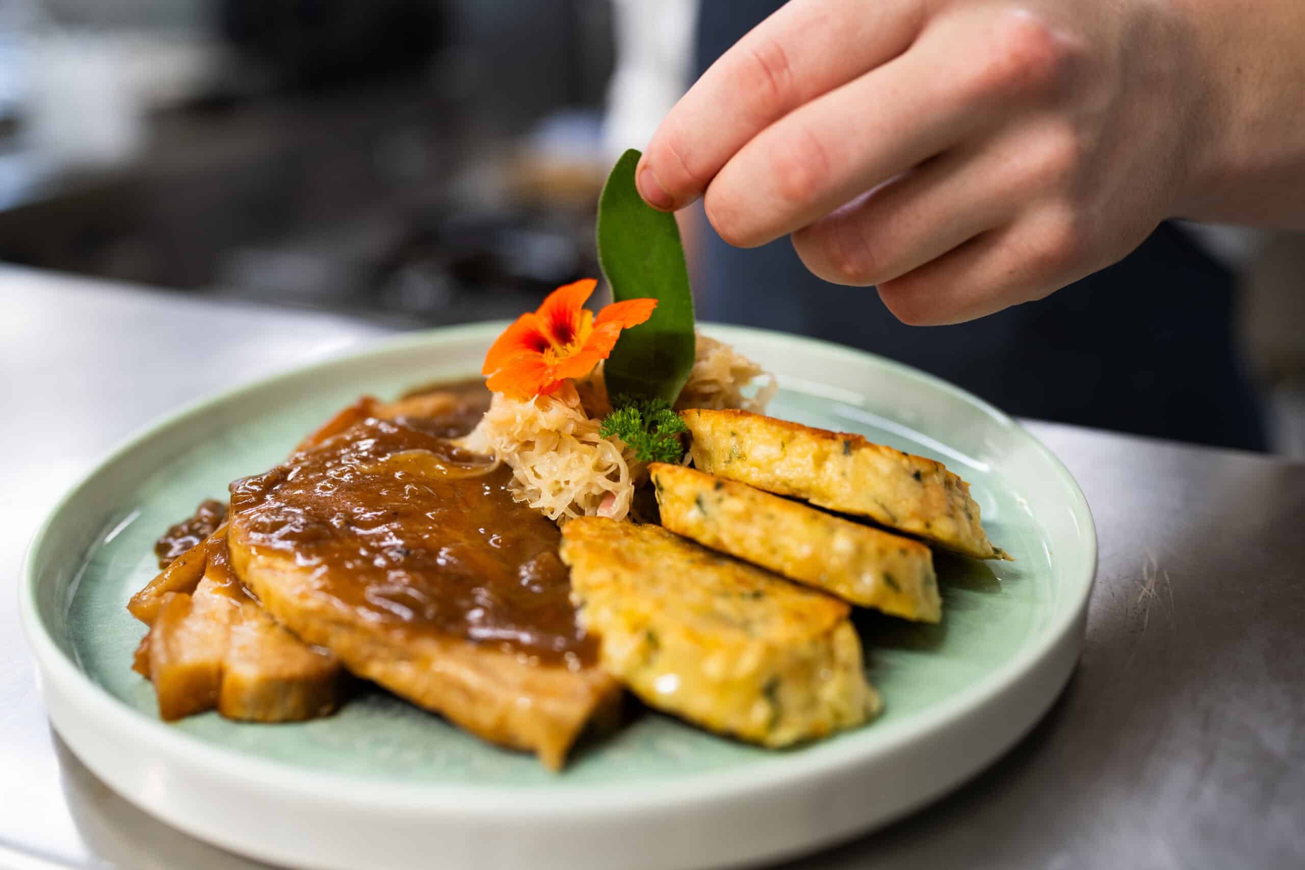 Winzerbratl I Semmelrolle I Sauerkraut vom Bio Schwein aus der Region